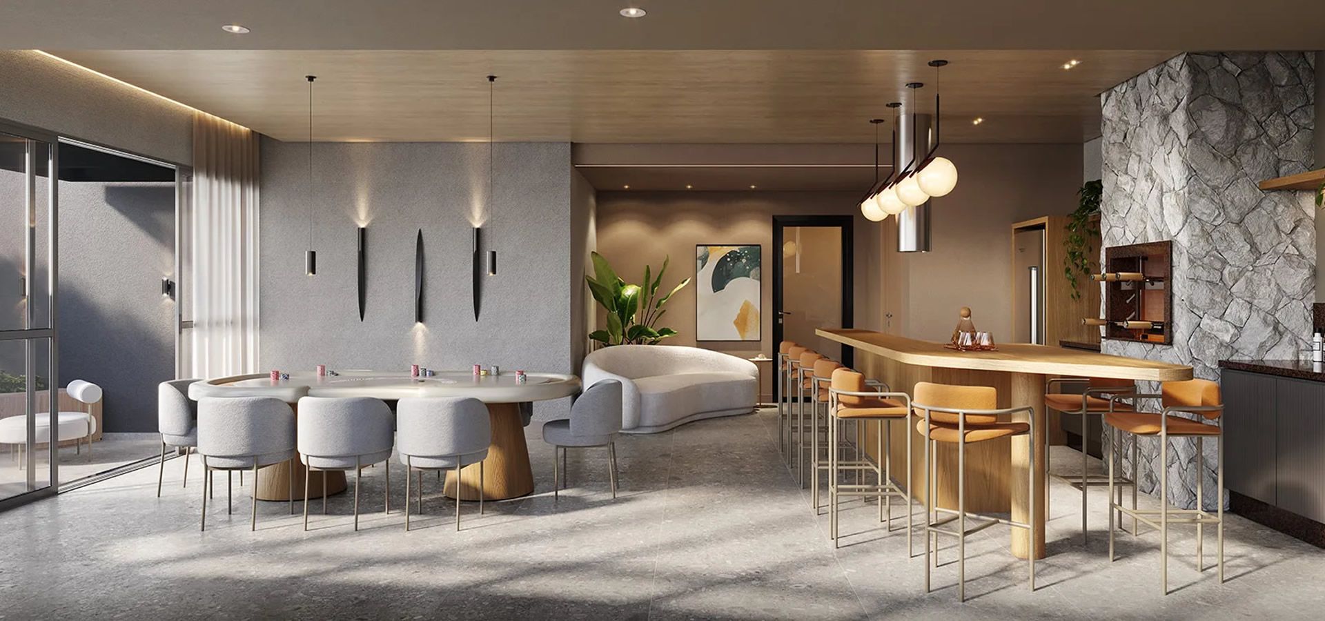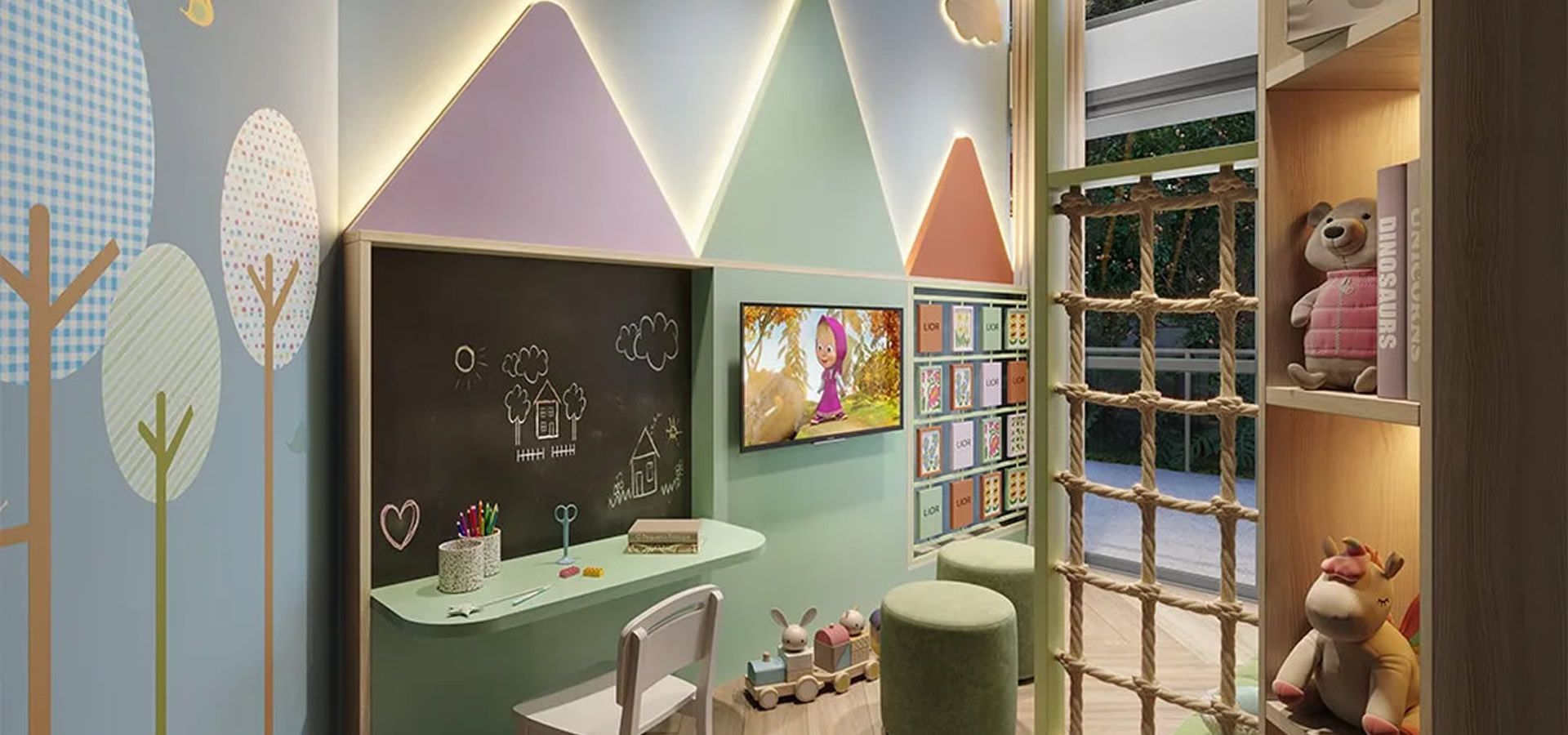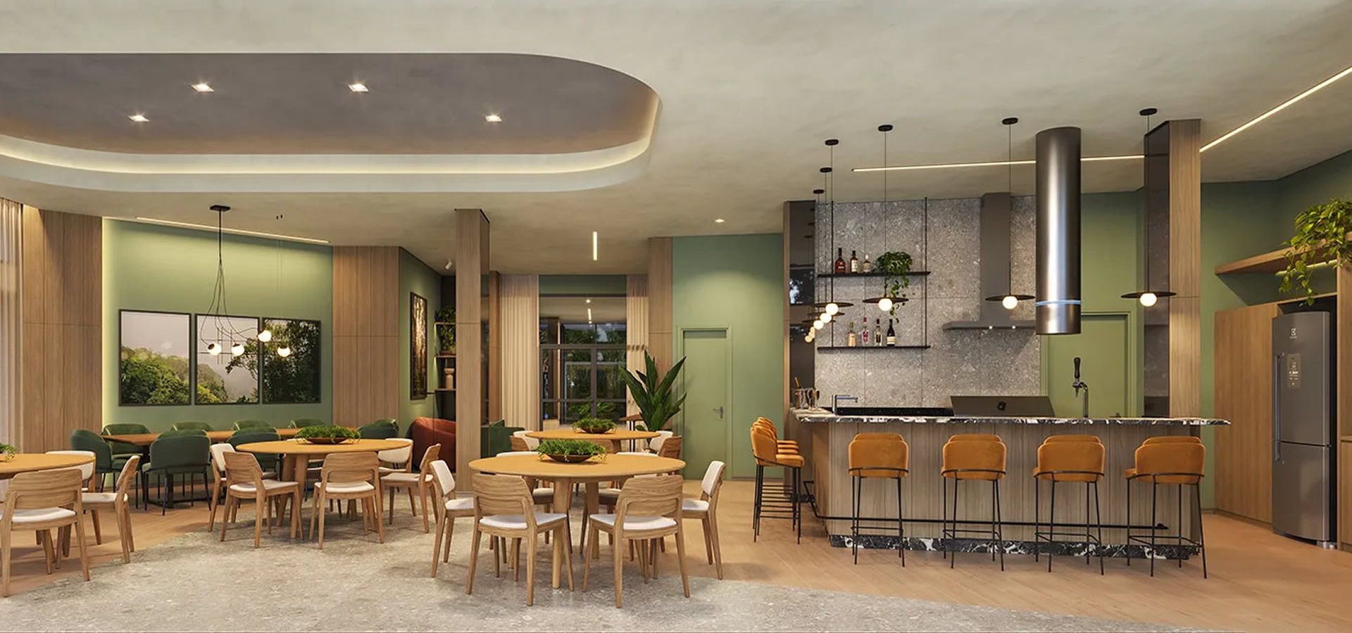 - Espaços restauradores e acesso à natureza em ambientes como rooftop, espaço convívio e solário.