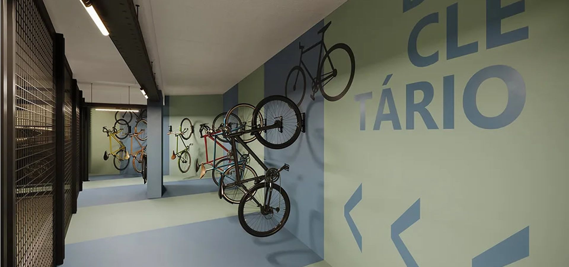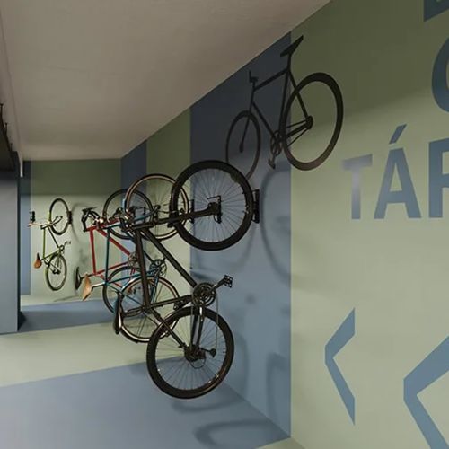 - Bicicletário com bomba e tomada para carregamento de bicicleta elétrica.