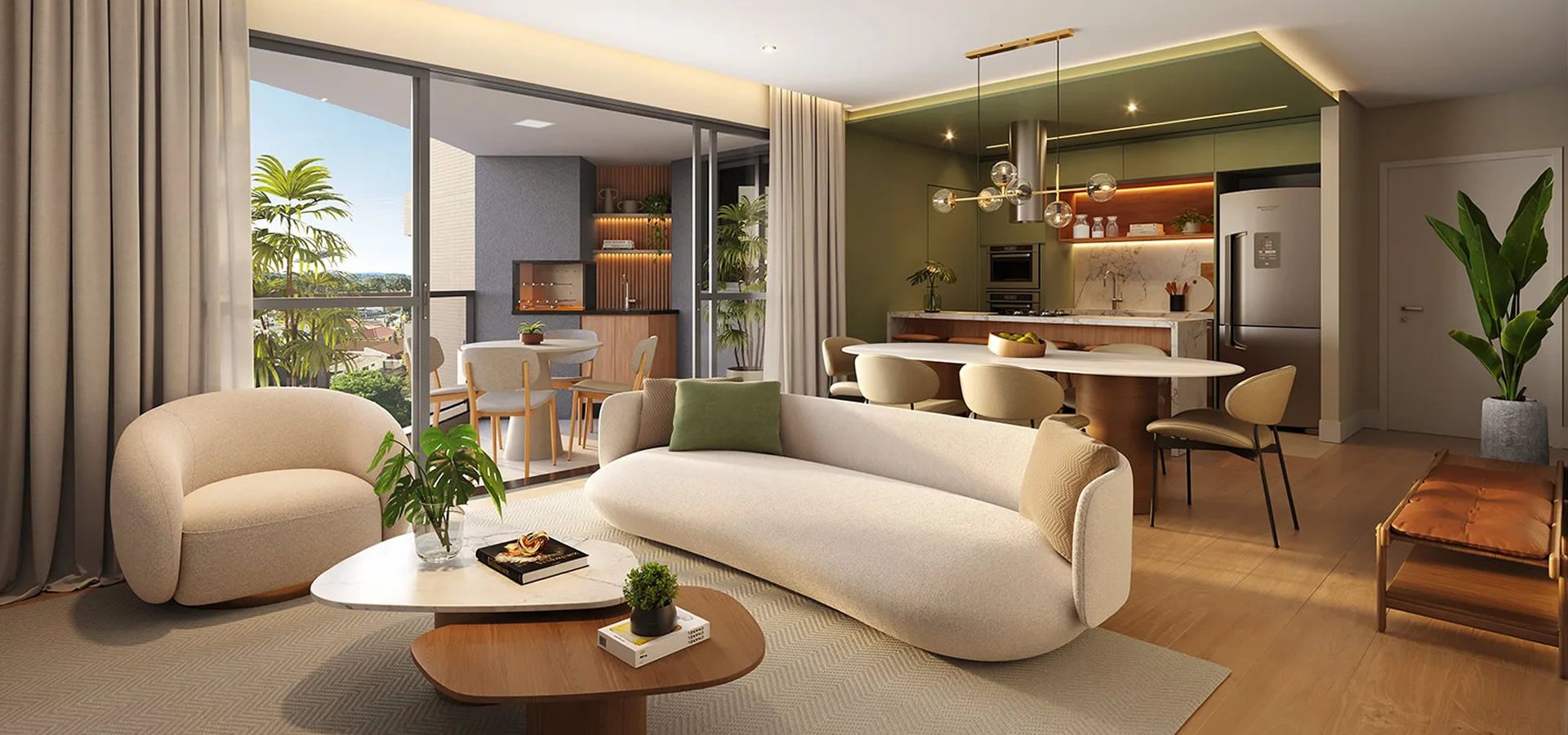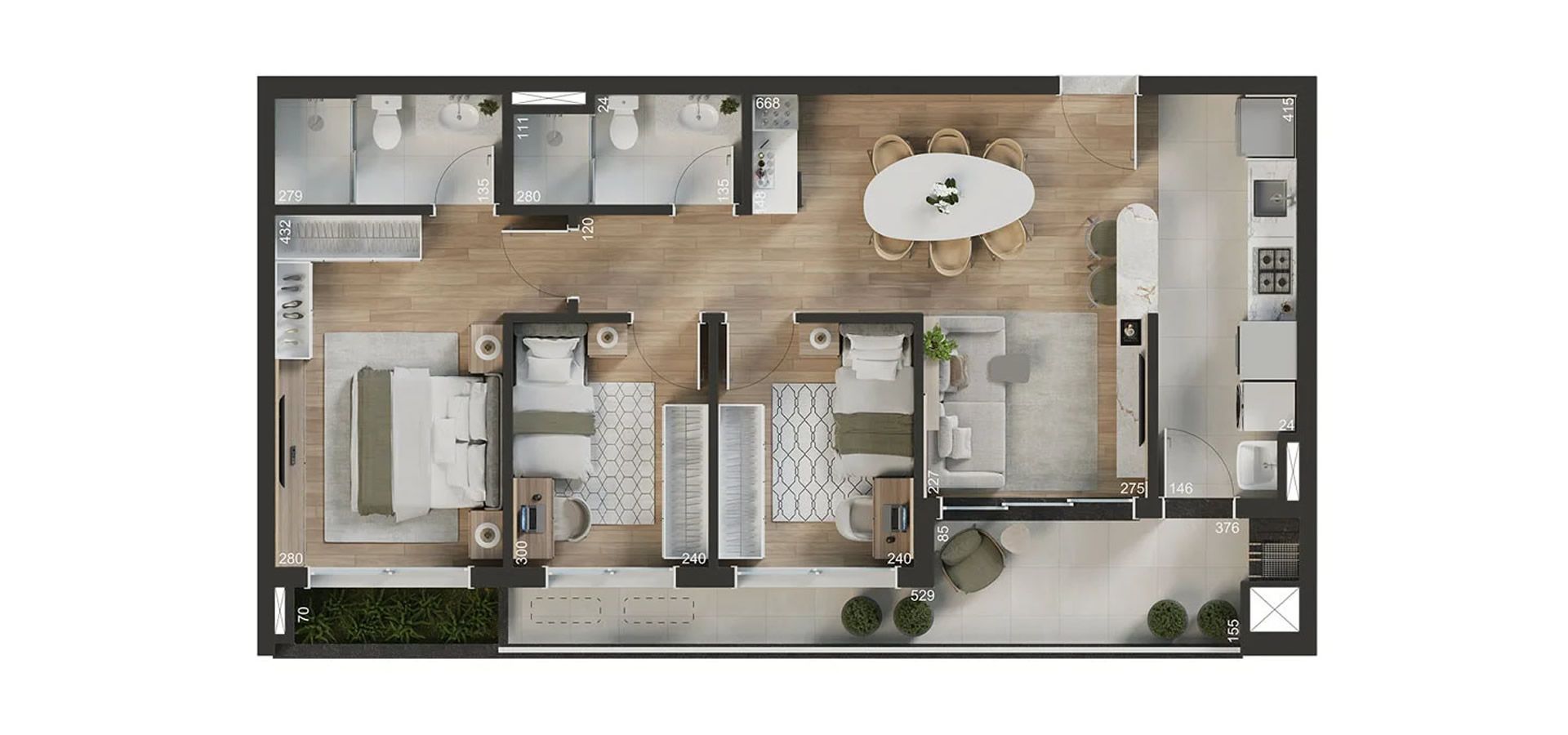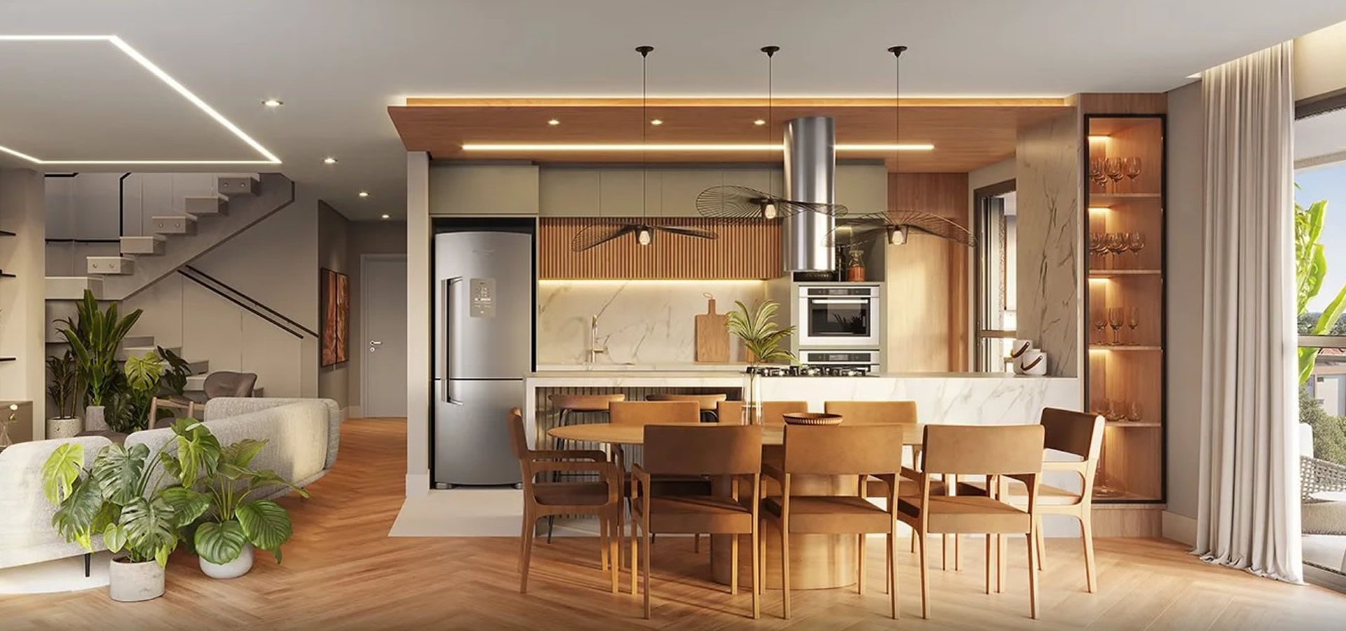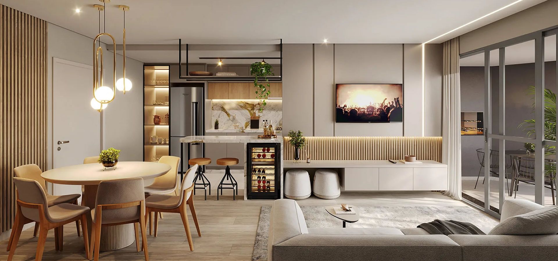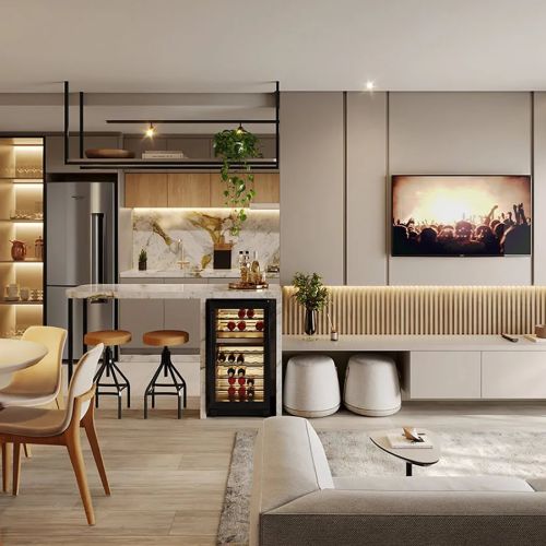 - Persiana integrada motorizada nos quartos.